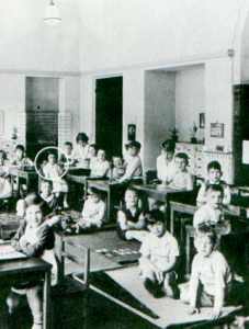 | 1935 - Anna aveva 6 anni. Nella foto Anna è indicata con un cerchio. Si trova con i suoi compagni di classe. |