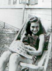 di casa. A sinistra di Anna si vede HANNELI, la sua amica che nel DIARIO è chiamata LIES GOOSENS. Si trovarono nel campo di BELSEN BERGER nel 1945, poco prima che Anna morisse. Hanneli si salvò. |