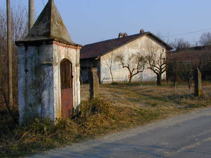 "Pilone" votivo accanto alla casa e sulla strada pubblica (casa collinare a Cantarana, Torrazzo, provincia di Asti)