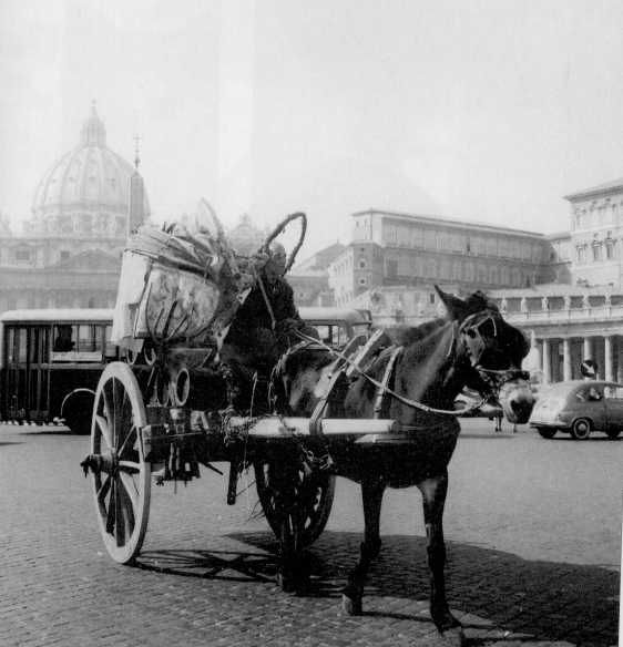 Roma, 1952. Foto Carlo Riccardi. Una "botticella" consegna in città il vino dei Castelli.