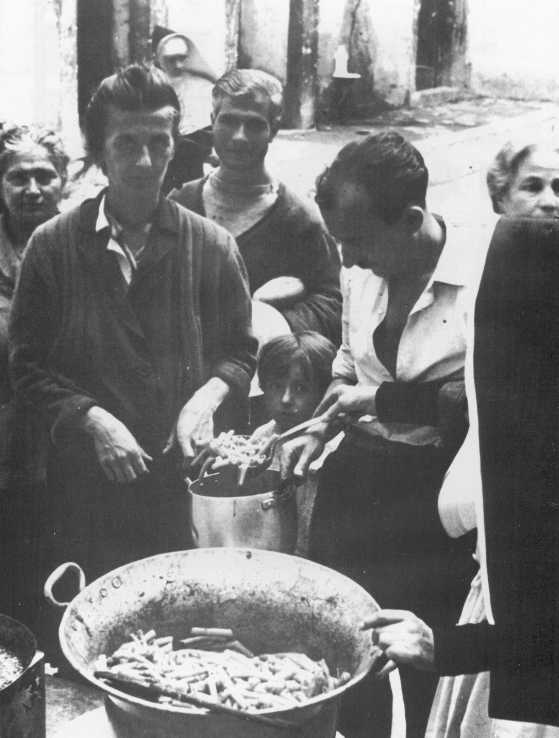 Napoli, 1948. Foto Riccardo Carbone. La pastasciutta distribuita dalle suore.
