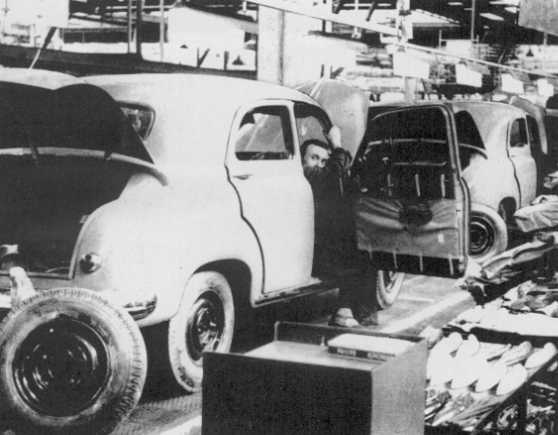 Torino, anni Cinquanta. Catena di montaggio della Fiat 1400.